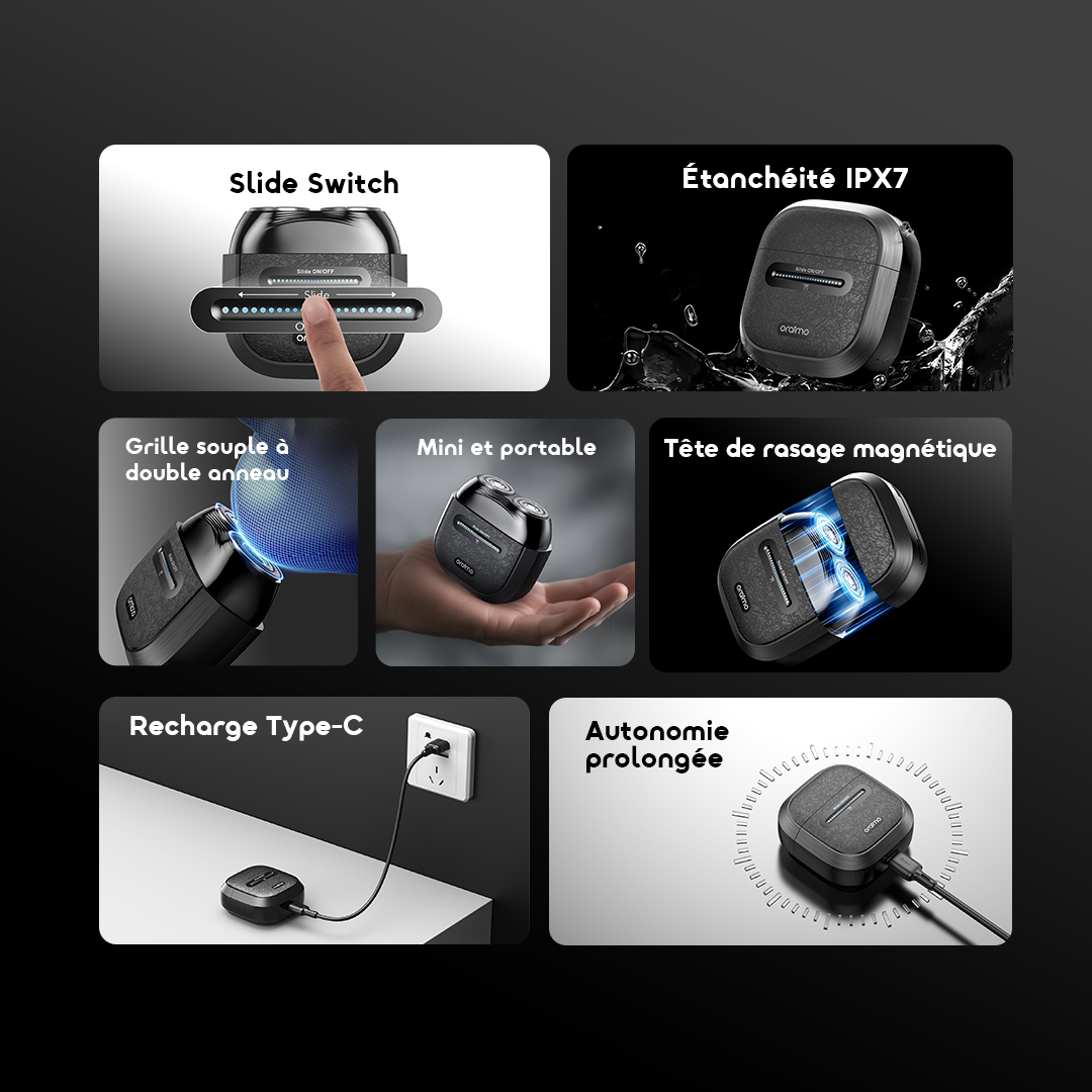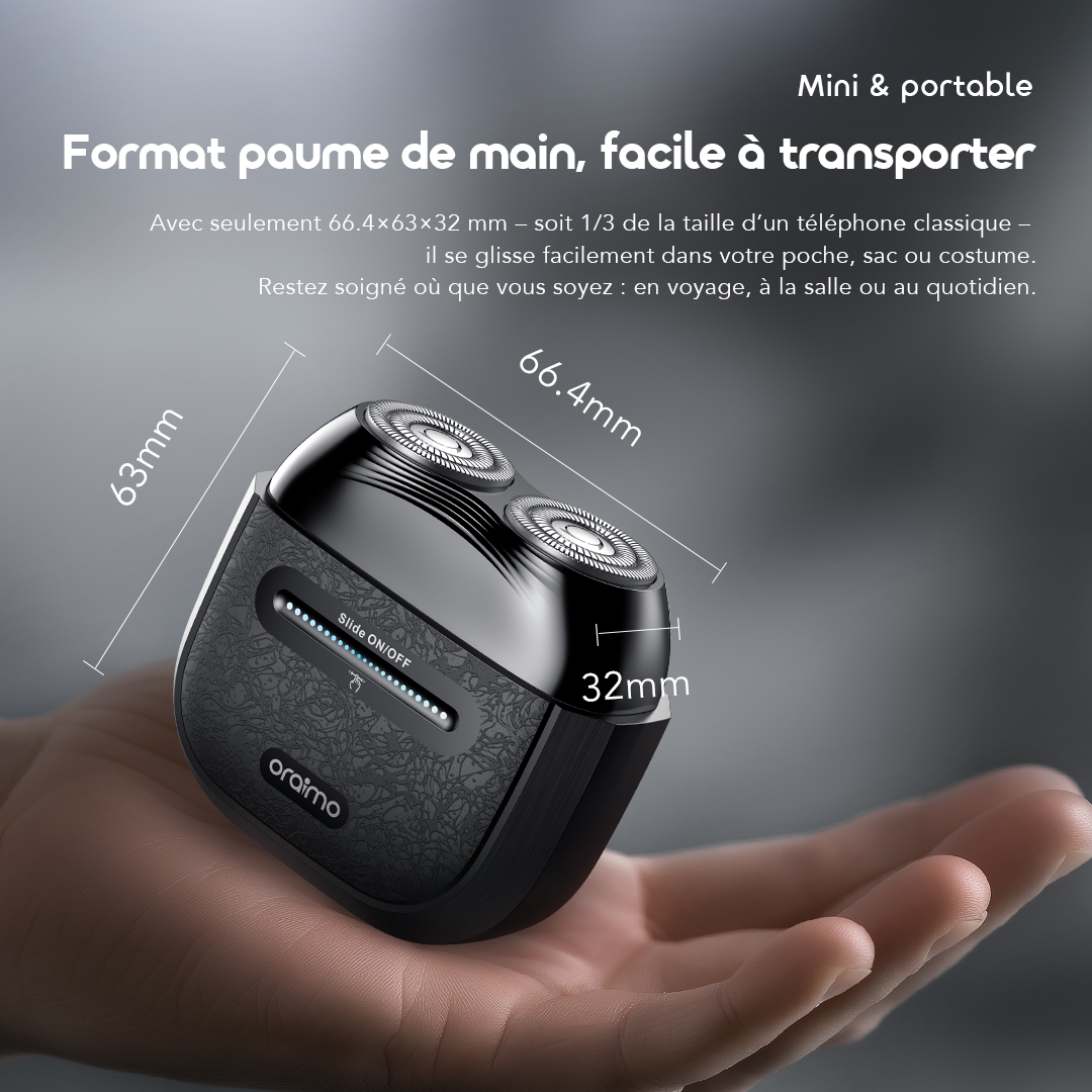 Avec seulement 66.4×63×32 mm – soit 1/3 de la taille d’un téléphone classique – il se glisse facilement dans votre poche, sac ou costume. Restez soigné où que vous soyez : en voyage, à la salle ou au quotidien