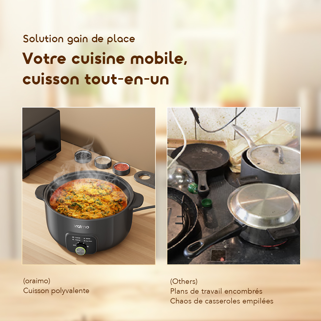 Mijoter, cuire à la vapeur, frire et faire un BBQ — tout dans une seule marmite qui transforme tout espace en cuisine complète.