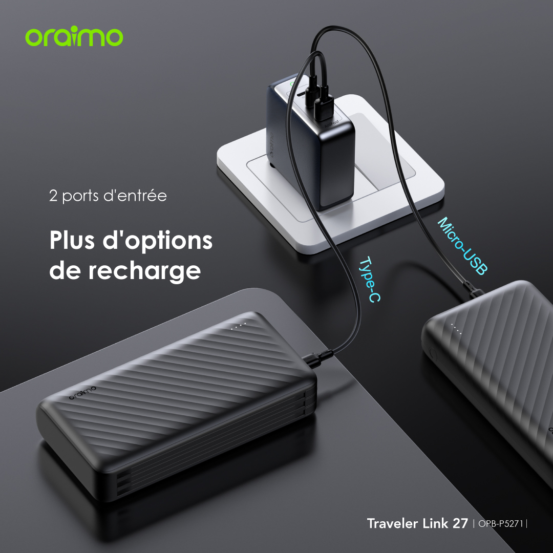Avec un port d'entrée Type-C et Micro-USB, vous avez plus d'options pour recharger le power bank.