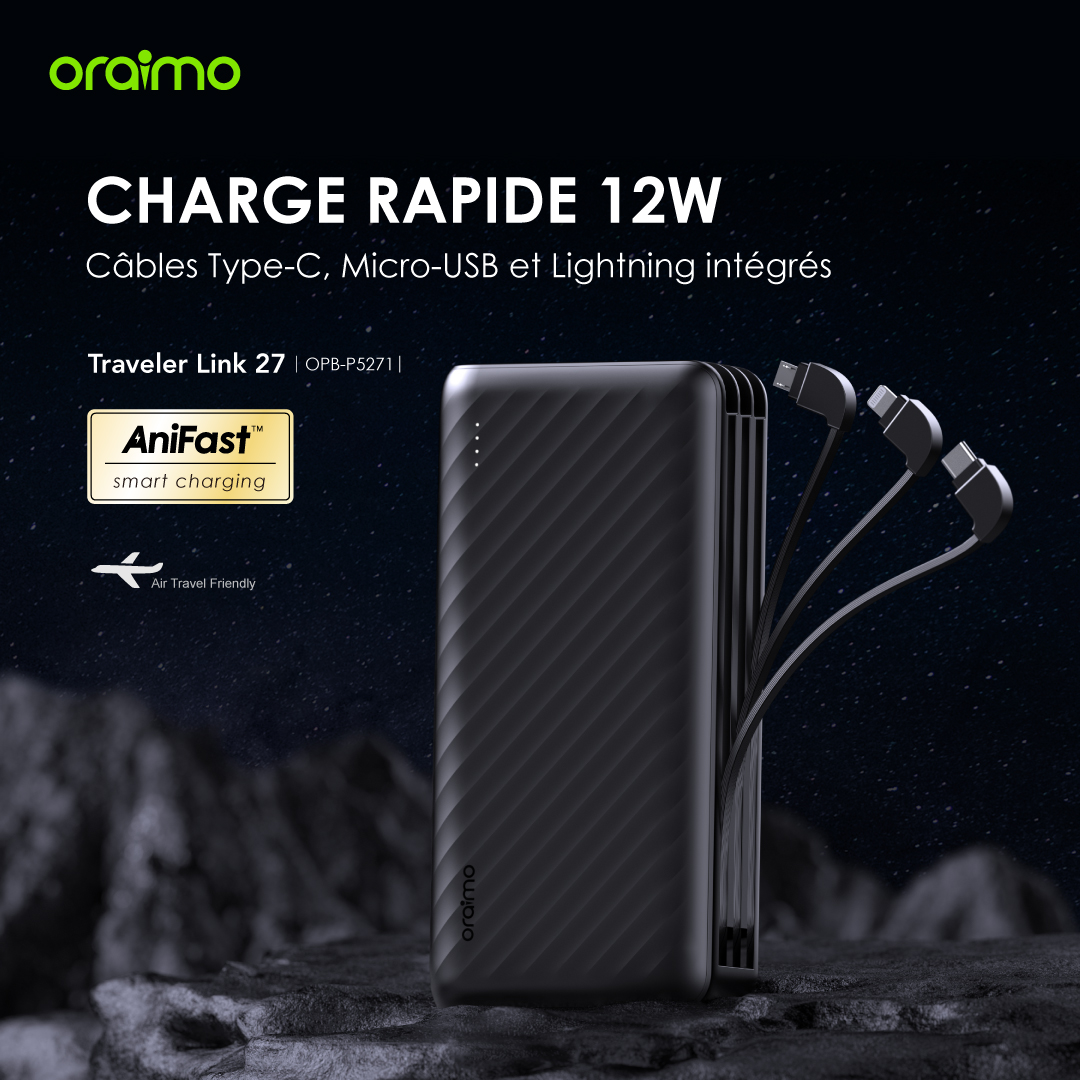 Équipé de la puce exclusive d'oraimo, le banc d'alimentation AniFast™ peut identifier intelligemment le protocole de charge rapide de votre appareil pour offrir la charge la plus rapide possible.